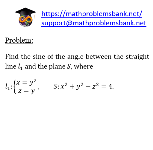 Problem: Find the sine of the angle between the straight line \( l_{1} \) and the plane \( S \), where \[ l_{1}:\left\{\begin{array}{c} x=y^{2} \\ z=y \end{array}, \quad S: x^{2}+y^{2}+z^{2}=4 .\right. \]