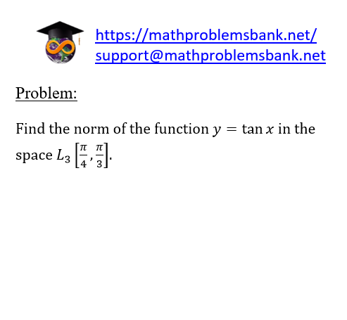 Problem: Find the norm of the function \( y=\tan x \) in the space \( L_{3}\left[\frac{\pi}{4}, \frac{\pi}{3}\right] \).