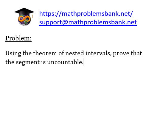 Problem: Using the theorem of nested intervals, prove that the segment is uncountable.