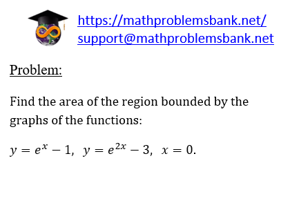 as Problem: Find the area of the region bounded by the graphs of the functions: \[ y=e^{x}-1, \quad y=e^{2 x}-3, \quad x=0 . \]