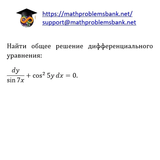 Найти общее решение дифференциального уравнения: \[ \frac{d y}{\sin 7 x}+\cos ^{2} 5 y d x=0 \]