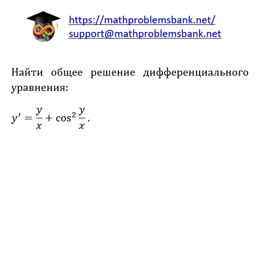 Найти общее решение дифференциального уравнения: \[ y^{\prime}=\frac{y}{x}+\cos ^{2} \frac{y}{x} \]