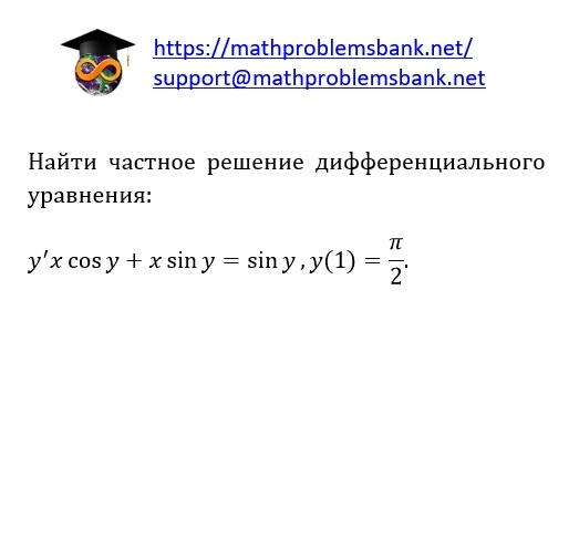 Найти частное решение дифференциального уравнения: \[ y^{\prime} x \cos y+x \sin y=\sin y, y(1)=\frac{\pi}{2} \]