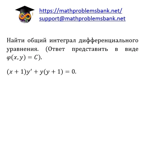 Найти общий интеграл дифференциального уравнения. (Ответ представить в виде \( \varphi(x, y)=C) \) \[ (x+1) y^{\prime}+y(y+1)=0 \]