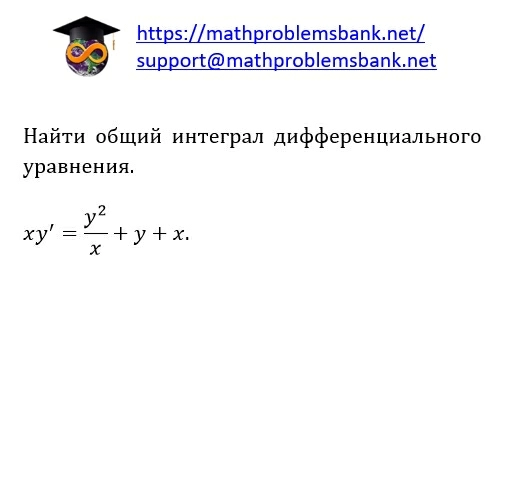 Найти общий интеграл дифференциального уравнения. \[ x y^{\prime}=\frac{y^{2}}{x}+y+x \]