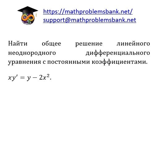 Найти общее решение линейного неоднородного дифференциального уравнения с постоянными коэффициентами. \[ x y^{\prime}=y-2 x^{2} \]