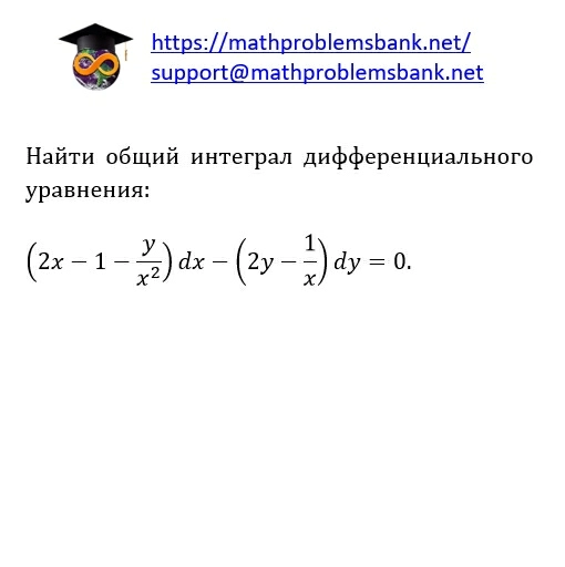 Найти общий интеграл дифференциального уравнения: \[ \left(2 x-1-\frac{y}{x^{2}}\right) d x-\left(2 y-\frac{1}{x}\right) d y=0 \]