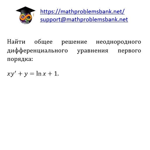 Найти общее решение неоднородного дифференциального уравнения первого порядка: \[ x y^{\prime}+y=\ln x+1 \]