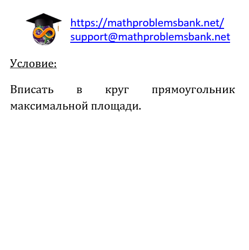 Условие: Вписать в круг прямоугольник максимальной площади.