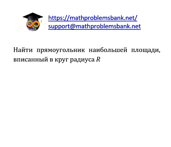 Найти прямоугольник наибольшей площади, вписанный в круг радиуса \( R \)