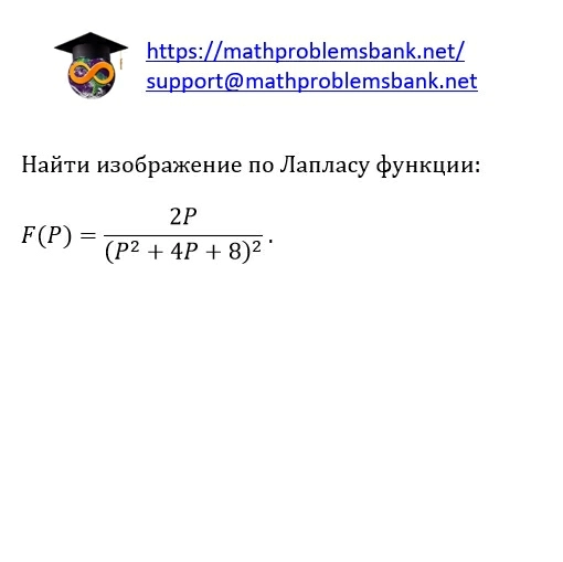 Найти изображение по Лапласу функции: \[ F(P)=\frac{2 P}{\left(P^{2}+4 P+8\right)^{2}} \]
