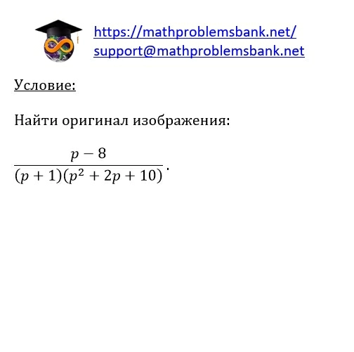 Условие: Найти оригинал изображения: \[ \frac{p-8}{(p+1)\left(p^{2}+2 p+10\right)} \]