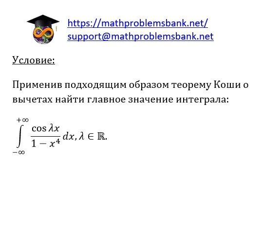 10.7.13 Здесь можете найти вычисления собственных и несобственных интегралов вещественной переменной с помощью вычетов, применяя различные приемы.