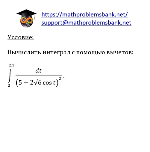 10.7.14 Здесь можете найти вычисления собственных и несобственных интегралов вещественной переменной с помощью вычетов, применяя различные приемы.