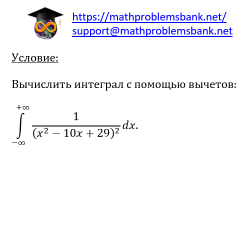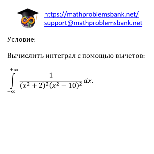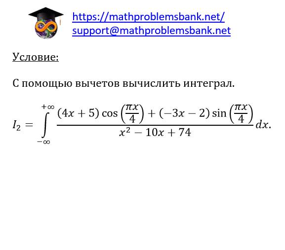10.7.26 Здесь можете найти вычисления собственных и несобственных интегралов вещественной переменной с помощью вычетов, применяя различные приемы.