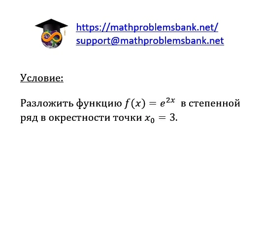 Условие: Разложить функцию \( f(x)=e^{2 x} \) в степенной ряд в окрестности точки \( x_{0}=3 \).